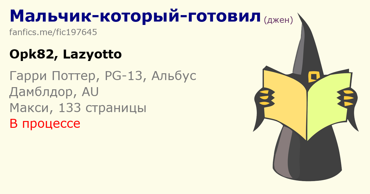 | Очень нравится «приземленная» цель Гарри. «Идите лесом со своим «Избранный», хочу быть поваром! Показать полностью С реакцией на зельеварение интересно сделано, и логично. Взаимоотношения с родственниками приятные; спасибо, что в крайность не кинули. В мальчика вложили понимание «нормальности», но это только на пользу. ________________________________________ Да тут автор собрал мои любимые моменты: думающий герой, скидывающий непосильные проблемы на взрослых. другая палочка и животное, другой факультет и круг общения Схожесть с палочкой матери — символична и трогательна. Фамильяр — для меня это что-то таинственное; то, что стоит выбрать самому. P.S. А совушка все же вернулась, только немного иначе. Мило ________________________________________ Так изящно Квирелла еще не выгоняли ________________________________________ «Что могу сказать: везёт тебе на сирых и убогих, братишка! Полгода назад меня в лесу подобрал-выходил; теперь вот — кузину Милли поддержал…» — Гарри тут местный кулинар и психолог для дам ________________________________________ ««Вот что я придумала, — подвела итоги Басси: — Во-первых, сбором якорей займёшься ты. А что? Не мне же надо с Магией примириться.» — О! Это очень свежо для меня. Это второй фанфик, где василиск разумен и не дохлый. И такие планы… я аж поперхнулась ________________________________________ «Сказано — сделано. И, что удивительно, всё получилось: мы проверили. Связь с Блэком не установилась, а вот с Реддлом — выглядит как толстый серебряный канат! Так что, как говорит твой папочка: шалость удалась!» — Вот это «шалость» с Лордом. Поперхнулась второй раз «— Вот так, Гарри, — обратился он к подопечному. — Если решил поиграть с магией — будь готов поплатиться жизнью. Твои родители посчитали себя умнее всех — а в результате ты остался сиротой.» Так от кулинарии мы пришли у тому, что Володя — крестный. Какой дальше поворот? ________________________________________ Жду продолжения. Желаю вдохновения 2 | |